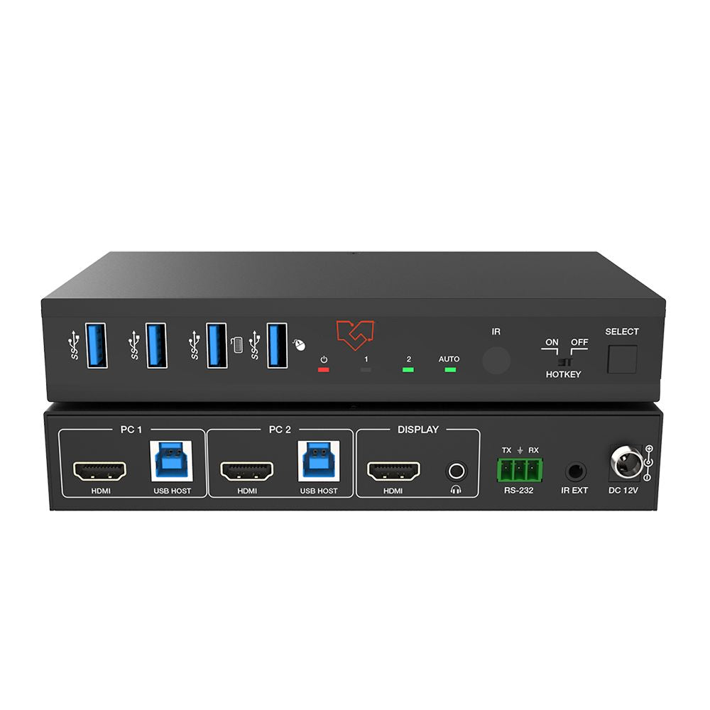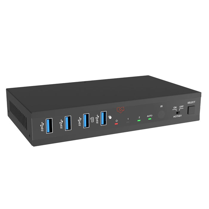 Enhanced with a virtual interaction function, the switcher automatically wakes up connected PCs in standby mode, minimizing switching time. Enjoy the flexibility of direct switching through front panel buttons, an IR remote, or hotkeys via a keyboard/mouse connected to the dedicated USB port.