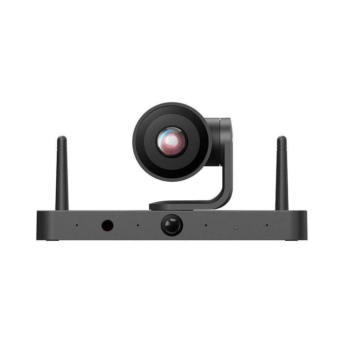 The camera features a 3x optical zoom PTZ camera with 110°DFOV and a panoramic lens with 120˚DFOV. AI-driven features like auto framing, speaker tracking, and presenter tracking are directly integrated, and Picture in Picture captures every attendee up close with premium video quality.