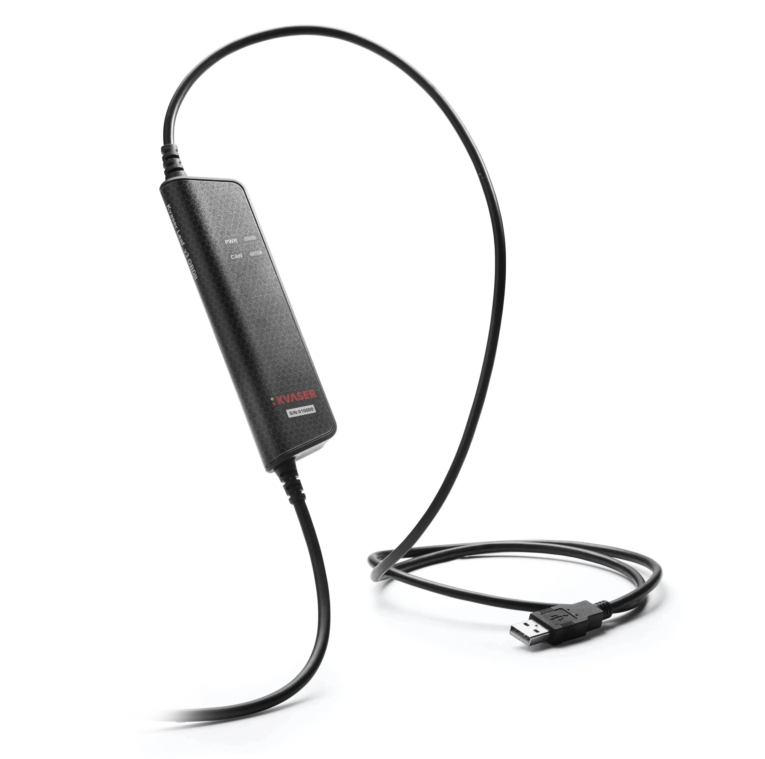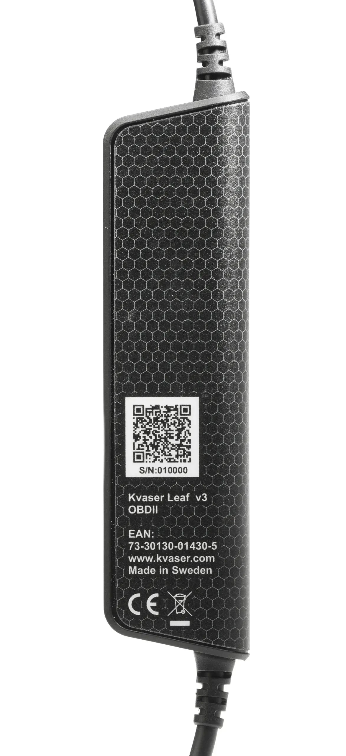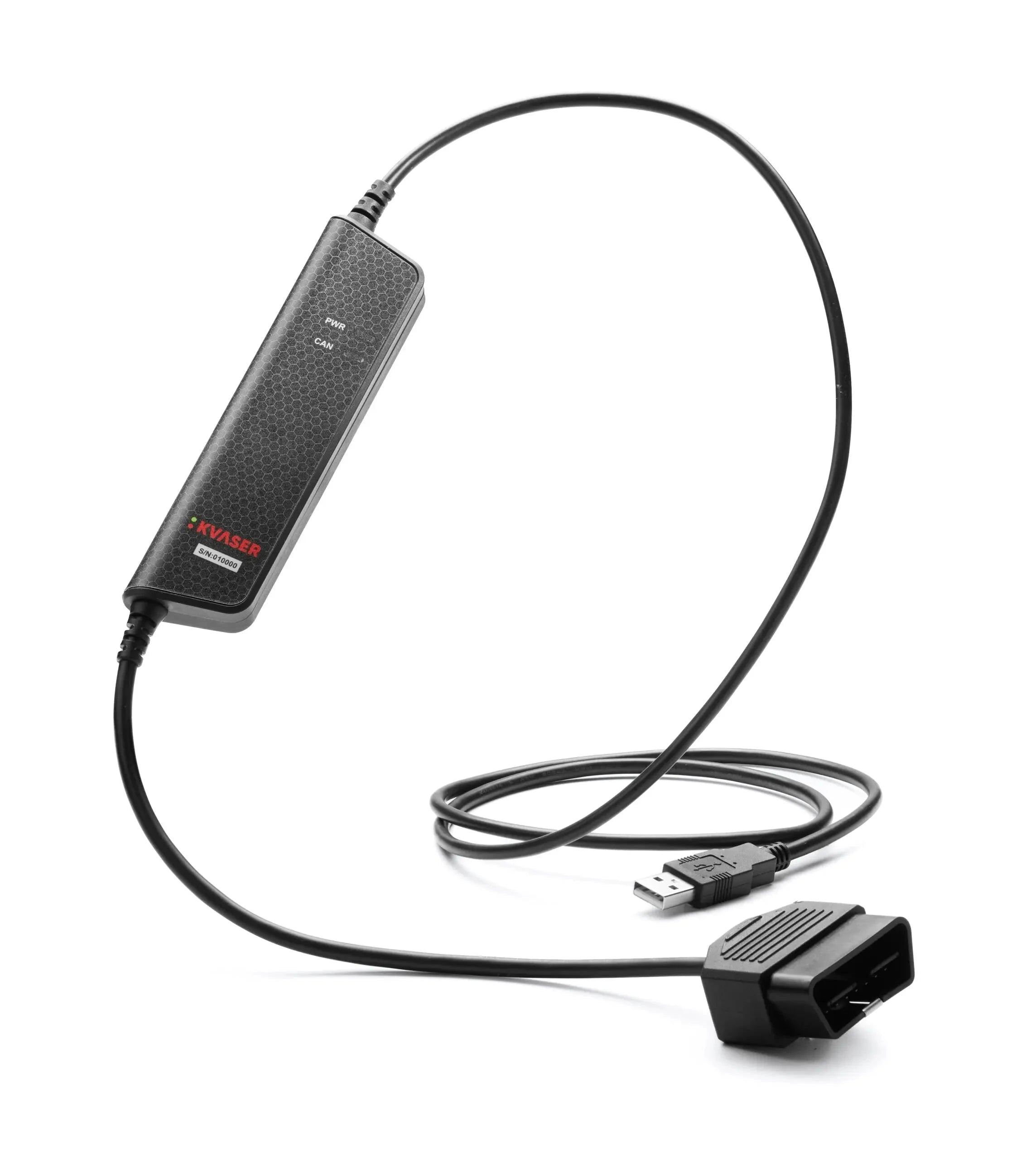 The Kvaser Leaf v3 OBD-II provides seamless access to vehicle diagnostics from your PC. It features a USB Type-A connector and a 16-pin OBD-II connector, offering direct access to data from the Engine Control Unit (ECU). The ECU stores diagnostic trouble codes (DTCs), enabling your software to retrieve engine performance data, fuel efficiency metrics, emissions information, and system error codes via the OBD-II interface.