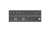 Switching via front panel buttons, keyboard/mouse hotkeys, IR remote control, and RS-232 commands