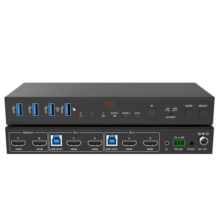 The switcher features a virtual interaction function to automatically wake up the connected PC in standby mode, which can reduce the switching time. It also supports direct switching through buttons on the front panel, IR remote, and hotkeys through the keyboard/mouse connected to the special USB port. It provides a wide compatibility choice for different operating systems, such as Windows, Mac OS, and Linux, with no driver required and simple plug-and-play.