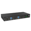 Switching via front panel buttons, keyboard/mouse hotkeys, and IR remote control