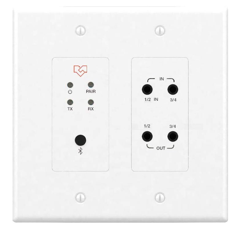 Introducing the VigilLink Dante 4x4 Wall Plate—an innovative solution that seamlessly integrates Bluetooth and analog audio with a digital Dante® networked audio system. This standard US Decora 2 Gang-sized wall plate offers versatile multi-input/output capabilities, featuring 2 channels of Bluetooth and 2 channels of unbalanced audio inputs, totaling 4 channels converted to Dante® digital audio. On the output side, it converts 4 channels of Dante® audio to 4 channels of unbalanced audio outputs. The flexibility extends further, allowing it to function as 4 channels of unbalanced audio inputs converted to Dante® digital audio, 4 channels of Dante® audio converted to 2 channels of Bluetooth outputs, and 2 channels of unbalanced audio outputs.