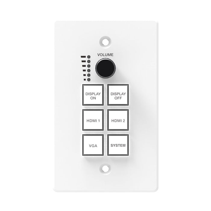 The control panel supports volume control, video switching and system control. At the same time, it supports 2 HDMI and one VGA input selection. The RS-232 port on the transmitter connects and provides power supply to the RS-232 port on the control panel via CAT5e/6/7 cable.